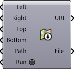 Download all OSM data within given bounds (be careful with the size of the region). OSM data will be downloaded to a cache and accessible by using the URL as input to import components. Providing the file path input will copy the data to the given location and can then be used to import later