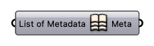 Merge Metadata Merge a list of Metadata into a single metadata Input List of Metadata [CR list] List of Metadata Output Meta [CR] Dictionary with keys and values that can be attached to Rhino geometries.