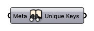 Search Metadata Find unique keys and values in the Metadata Input Meta [CR list] Dictionary with keys and values that can be attached to Rhino geometries. Output Unique Keys [Text list] Unique Keys